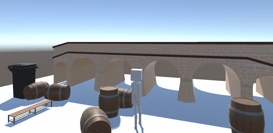 Next I set up a basic trigger, a door that disappears when the player approaches. This was a good refresher for how these types of triggers work. These types of triggers can be repurposed to do many useful things in Unity. They are also quite simple to implement, at least at this basic level.